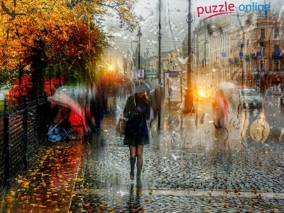 Parasol, Deszcz, Petersburg, Kobieta, Ulica