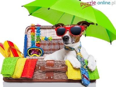 Waliza, Jack russell terrier, Okulary, Parasol, Wakacje