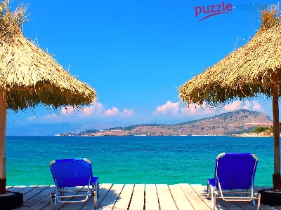 Plaża, Parasole, Wakacje, Leżaki, Morze, Góry, Tropiki