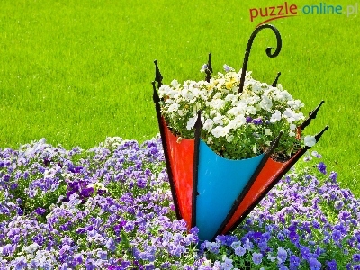 Puzzle Parasolka, Ogród, Bratki, Trawa