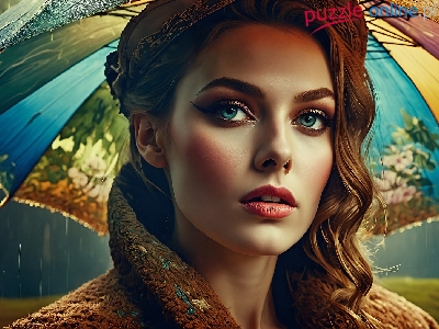 Puzzle Deszcz, Kobieta, Twarz, Parasolka