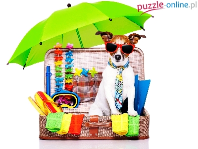 Jack Russell terrier, Walizka, Śmieszne, Wakacje, Pies, Okulary, Parasolka