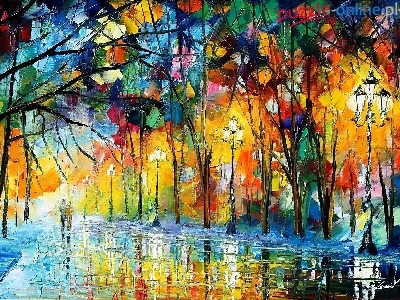 Park, Po Deszczu, Leonid, Afremov, Spacer