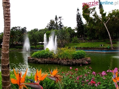 Puzzle Fontanny, Park, Kwiaty