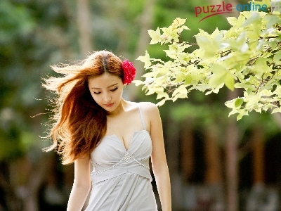 Puzzle Park, Zamyślona, Kobieta, Spacer