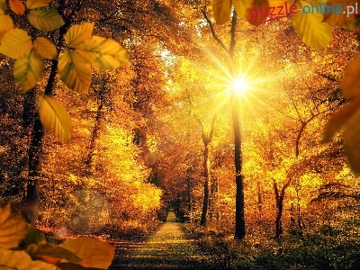 Park, Promienie słońca, Jesień, Liście, Drzewa