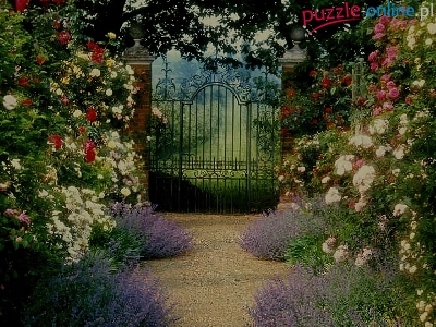 Park, Kwiaty, Obraz, Reprodukcja, Brama