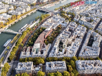 Paryż, Francja, Miasto, Z lotu ptaka, Rzeka Sekwana, Domy, Mosty