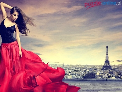 Paryż, Wieża, Miasta, Kobieta, Eiffla, Panorama