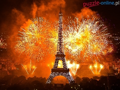 Puzzle Paryż, Wieża Eiffla, Fajerwerki, Francja