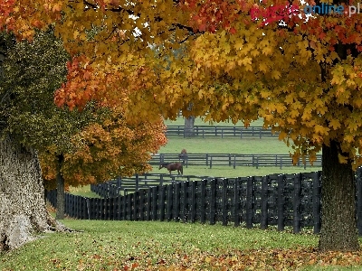Pastwiska, Drzewa, Ogrodzone, Konie