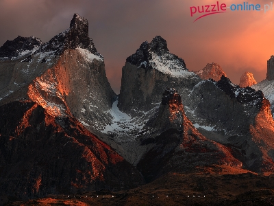 Torres del Paine, Chile, Góry, Wschód słońca, Masyw, Patagonia, Park Narodowy Torres del Paine