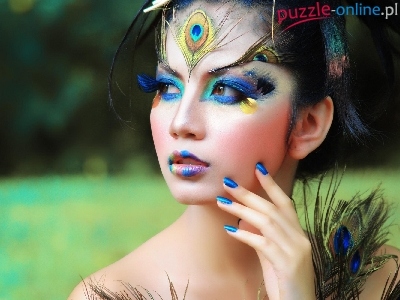 Puzzle Pawie, Modelka, Makijaż, Oczka