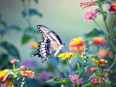 Puzzle Paź królowej, Motyl, Kwiaty