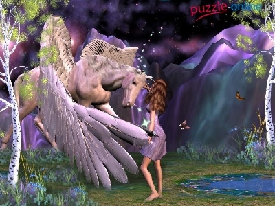 Puzzle Pegaz, Grafika, Fantasy, Kobieta