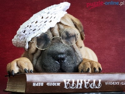 Pei, Książka, Szczeniaczek, Shar, Okulary