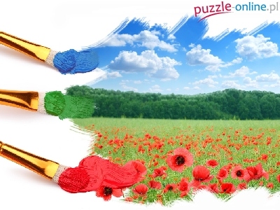 Puzzle Pejzaż, Grafika, Pędzle, Kwiaty