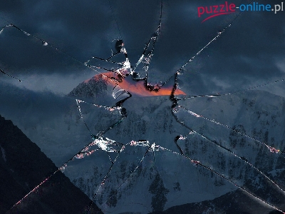 Puzzle Pęknięty, Góry, Mgła, Ekran