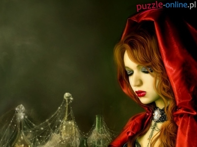 Puzzle Peleryna, Kobieta, Czerwona, Fiolki