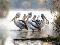 Zarośla, Pelikany, Jezioro, Grafika AI