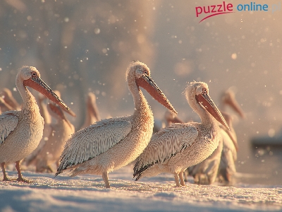 Puzzle Śnieg, Pelikany, Zima, Grafika AI