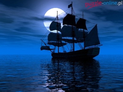 Pełnym, Księżyc, Żaglowiec, Na, Morzu