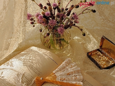 Puzzle Perły, Książka, Wachlarz, Kwiaty