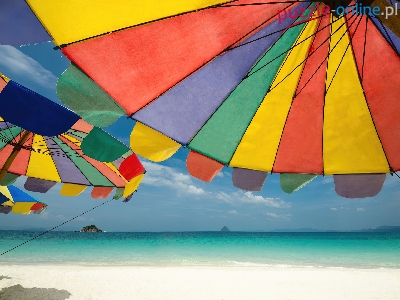 Phuket, Morze, Tajlandia, Plaża, Parasole, Island