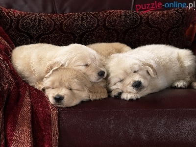 Puzzle Szczeniaki, Śpiące, Psy, Golden retrievery