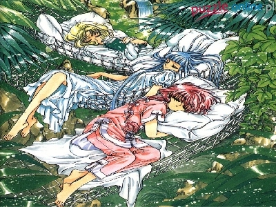 Umi, Fuu, Hikaru, Zdjęcie kobieta, Magic Knight Rayearth, pluszak nutka, Magic Knight Rayearth, ludzie Drzewo, Lantis, Ptaki Hikaru, Miecz Hikaru, Lantis