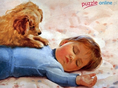 Puzzle Dziecko, ÅšpiÄ…ce, Pies