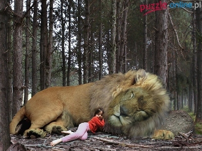 Puzzle Lew, ÅšpiÄ…cy, Dziewczynka