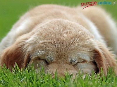 Puzzle Szczeniaczek, Śpiący, Trawa