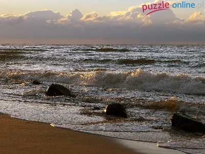 Puzzle Piasek, Woda, Kamienie, Chmury