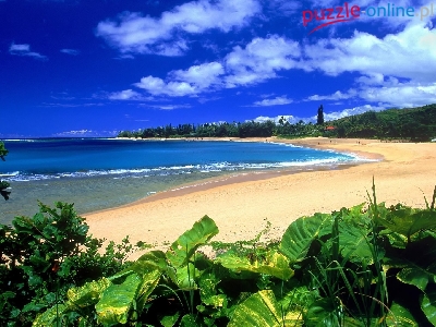 Piasek, Woda, Hawaje, Kauai, Liście