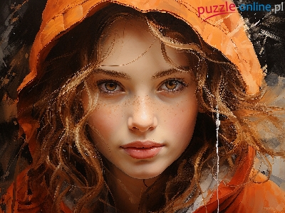 Kaptur, Spojrzenie, Dziewczyna, Piegi, Grafika, Pomarańczowy
