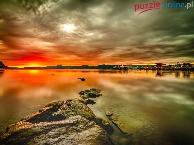 Piękny, Kamienie, Słońca, Jezioro, Góry, Wschód
