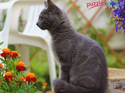 Puzzle Pień, Aksamitki, Kot, Drzewa