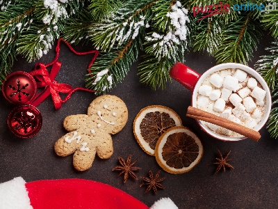 Pierniczek, Kakao, Anyż, Boże Narodzenie, Świerk, Kompozycja, Gałązki, Pianki, Świąteczna, Kubek, Laska cynamonu