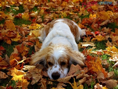 Puzzle Żółte, Łaciaty, Pies, Liście