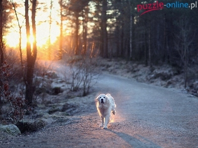 Pies, Las, Droga, Biegnący, Słońce