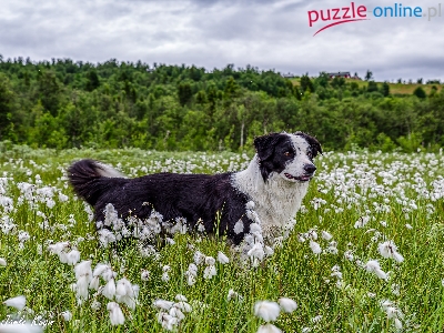 Rośliny, Bordier collie, Pies, Łąka, Drzewa, Trawa