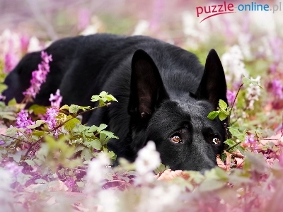 Pies, Bzu, Leżący, Czarny, Kwiaty