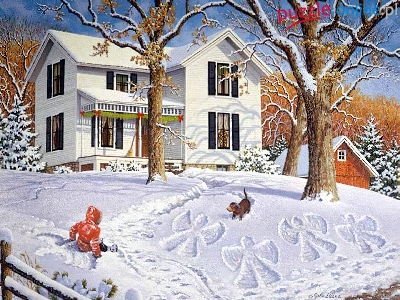 Puzzle Pies, Dom, Dziecko, Zima
