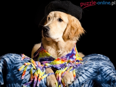 Puzzle Czapka, Pies, Golden retriever, Koc