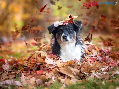 Puzzle Jesienne, Pies, Liscie