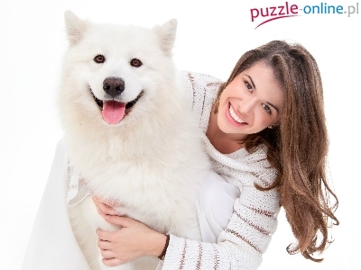 Puzzle Pies, Uśmiechnięta, Kobieta, Samojed