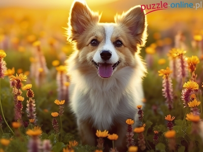 Puzzle Kwiaty, Biało-rudy, Pies
