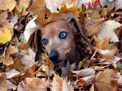 Puzzle Liście, Pies, Oczy