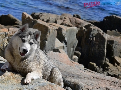 Puzzle Skały, Pies, Morze